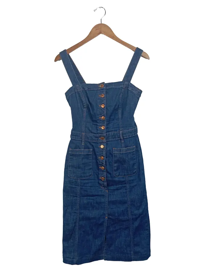 Damen Jeanskleid Gr. 32 Blau Casual Midikleid Baumwolle