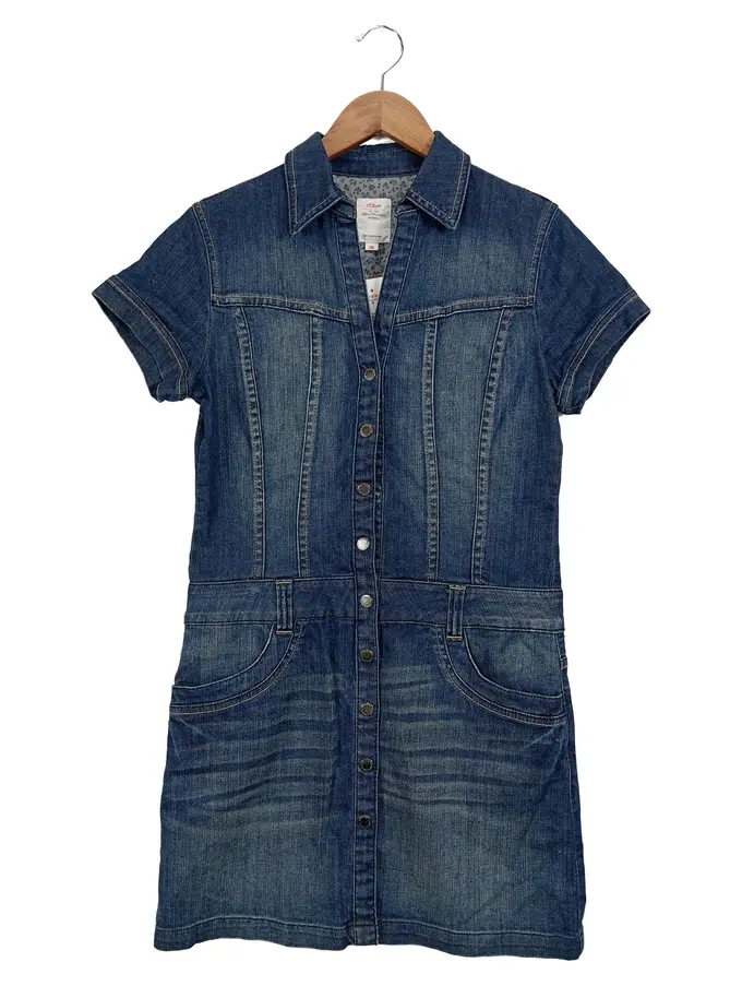 Damen Jeanskleid Kurzarm Hemdkleid Gr. 38 Blau Casual