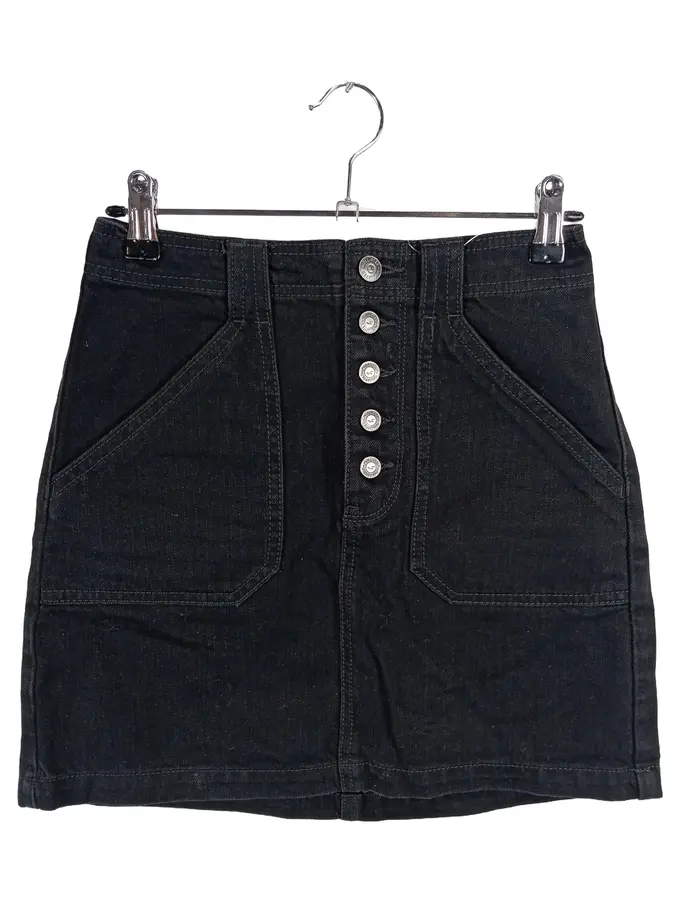 Damen Jeansrock Minirock Schwarz Gr. 34/XS Baumwolle Knopfleiste
