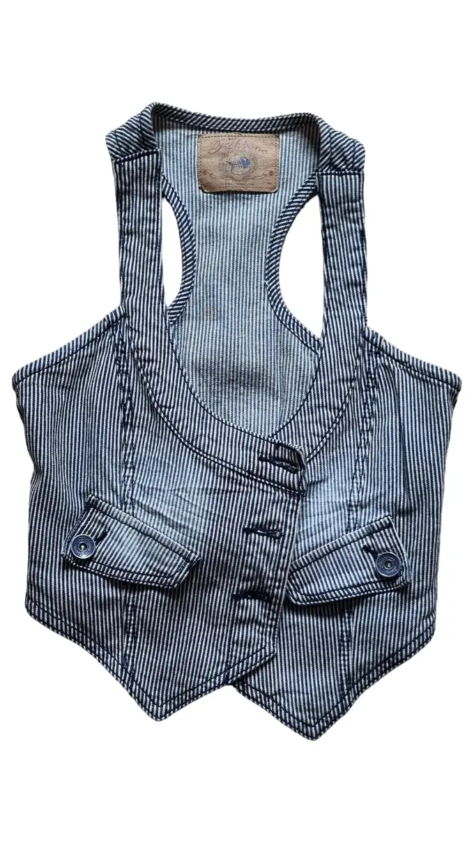 Damen Jeansweste Weste Gr. 36/S Blau Gestreift Casual