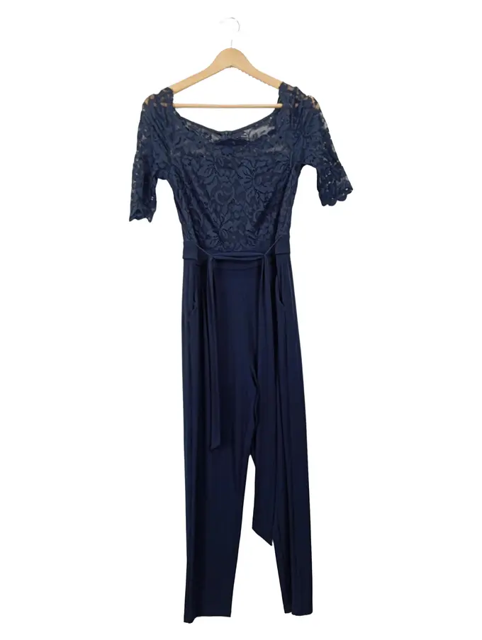 Damen Jumpsuit mit Spitze Gr. 34/XS Blau Elegant