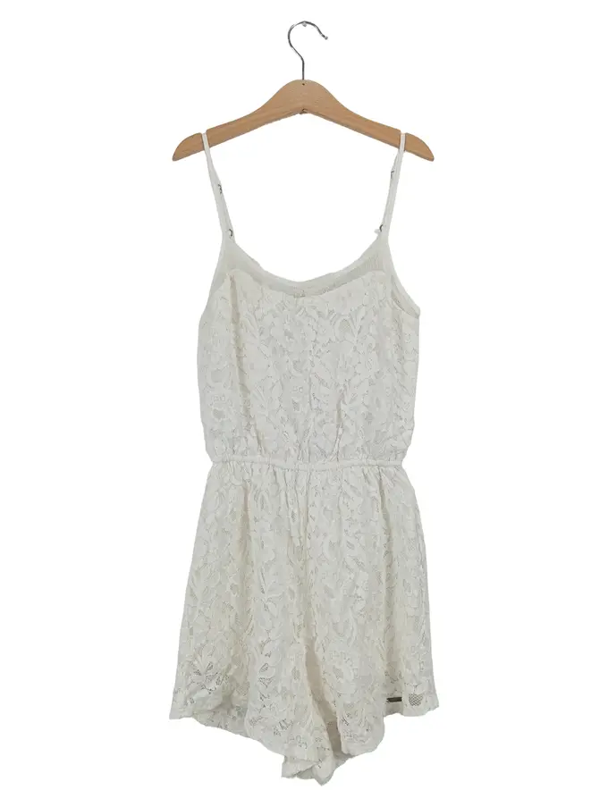 Damen Jumpsuit Romper Spitze Weiß Gr. 34/XS Sommer