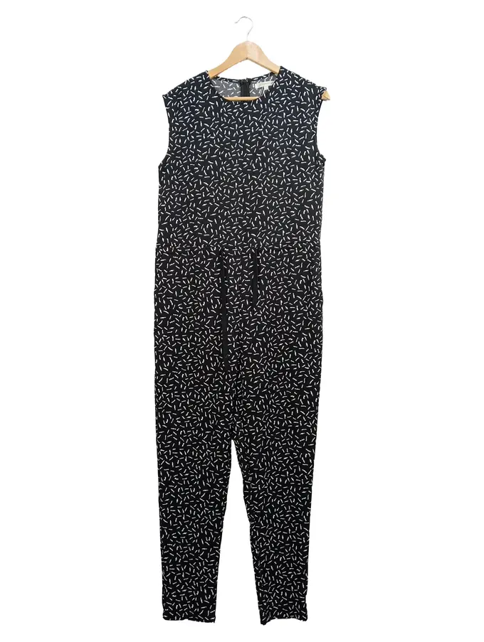 Damen Jumpsuit Schwarz Weiß Muster Gr. S Ärmellos