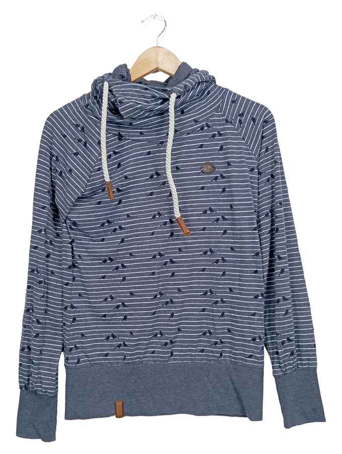 Damen Kapuzenpullover Gr. 36/S Blau Gestreift Casual