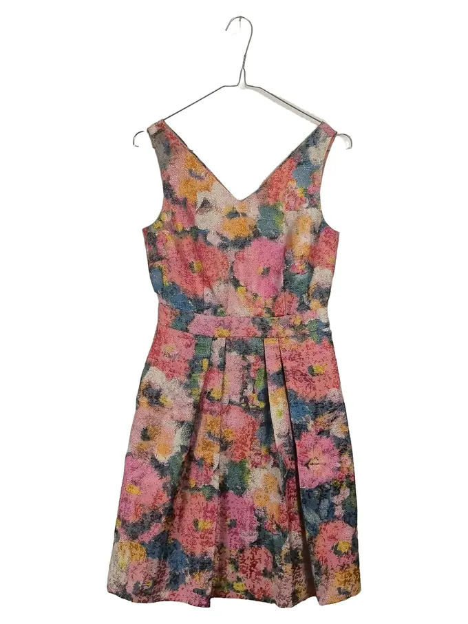 Damen Kleid Gr. 32 Blumenmuster Mehrfarbig Metallic A-Linie