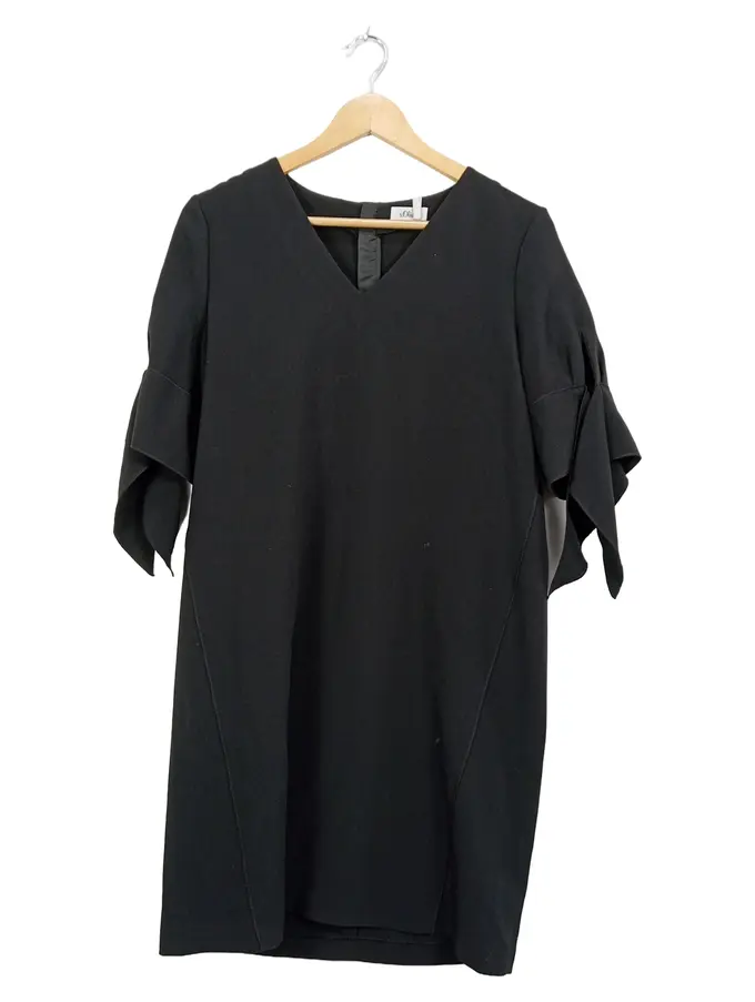 Damen Kleid Gr. 36 Schwarz Elegant Volantärmel Festlich