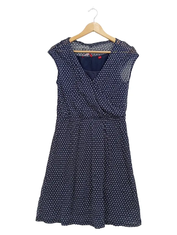 Damen Kleid Gr. 38 Blau Wickelkleid Maritim Anker-Muster