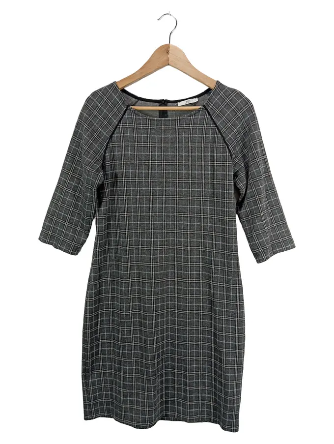 Damen Kleid L/42 Grau Kariert Business Midikleid 3/4-Arm