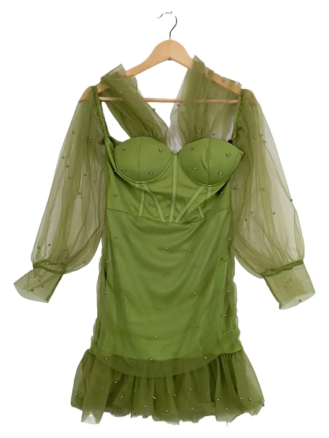 Damen Korsett Kleid Gr. L Grün Tüll Perlen Festlich Party