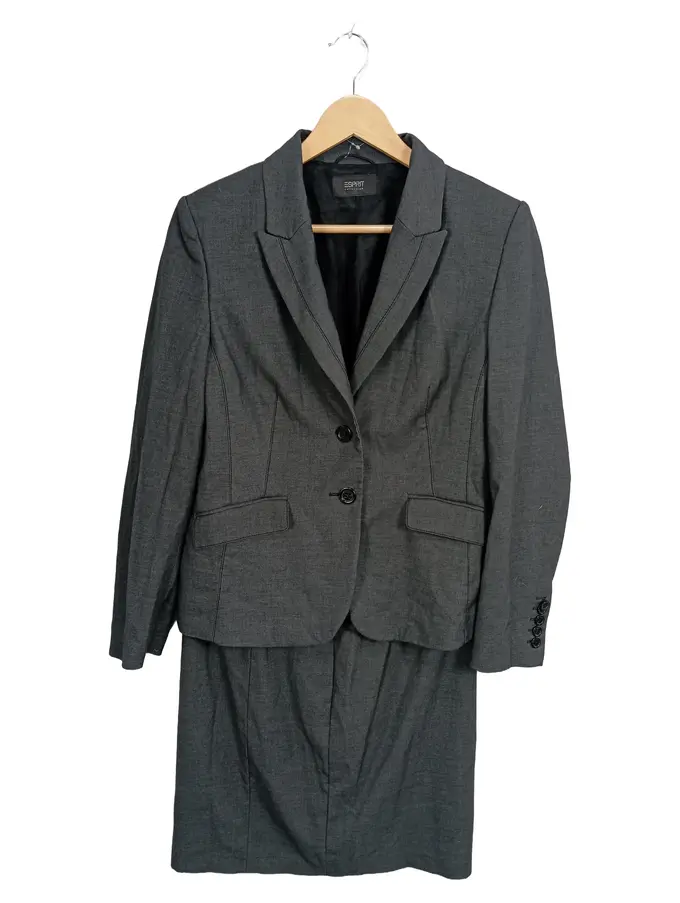 Damen Kostüm Rock Blazer Set Gr. 38 Grau Business Anzug