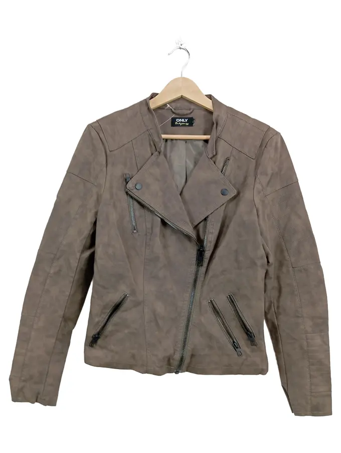 Damen Kunstlederjacke Gr. 38 Braun Casual Bikerjacke