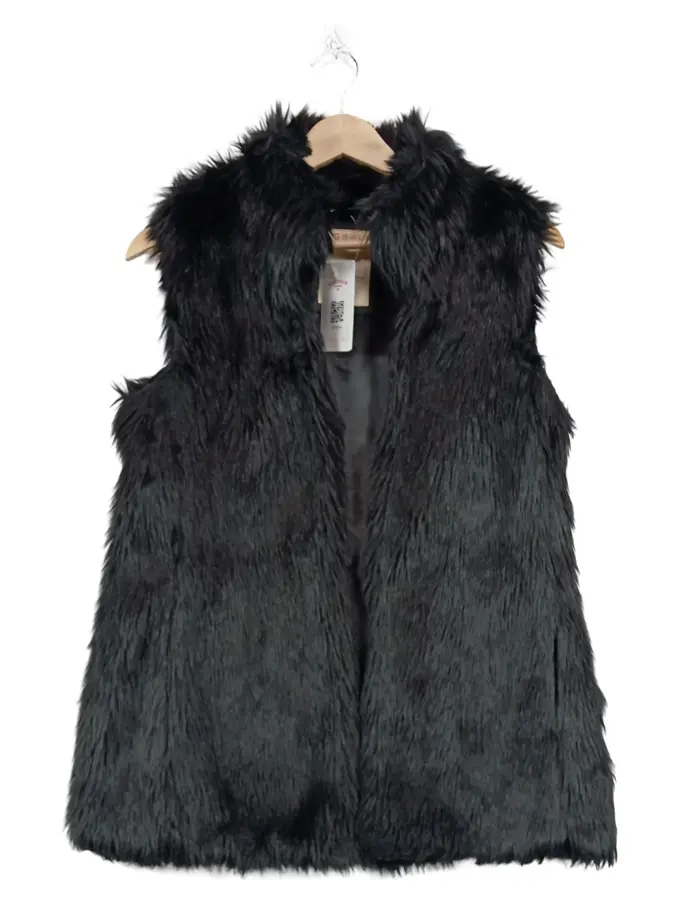 Damen Kunstpelz Weste Gr. 36 Schwarz Modisch Fellweste