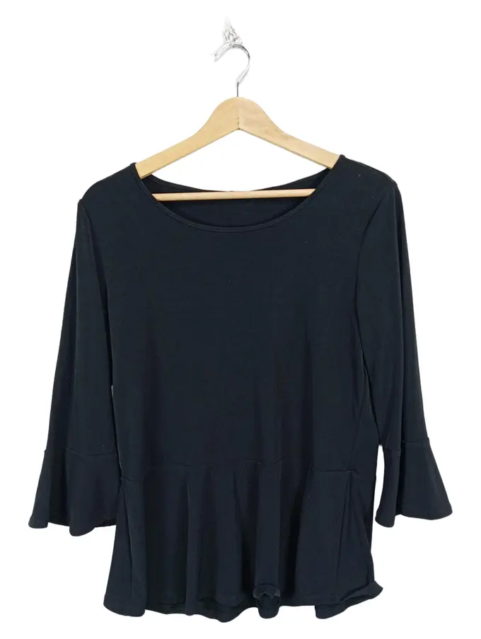 Damen Langarmshirt 3/4 Arm Gr. 38/M Schwarz Rüschen Basic