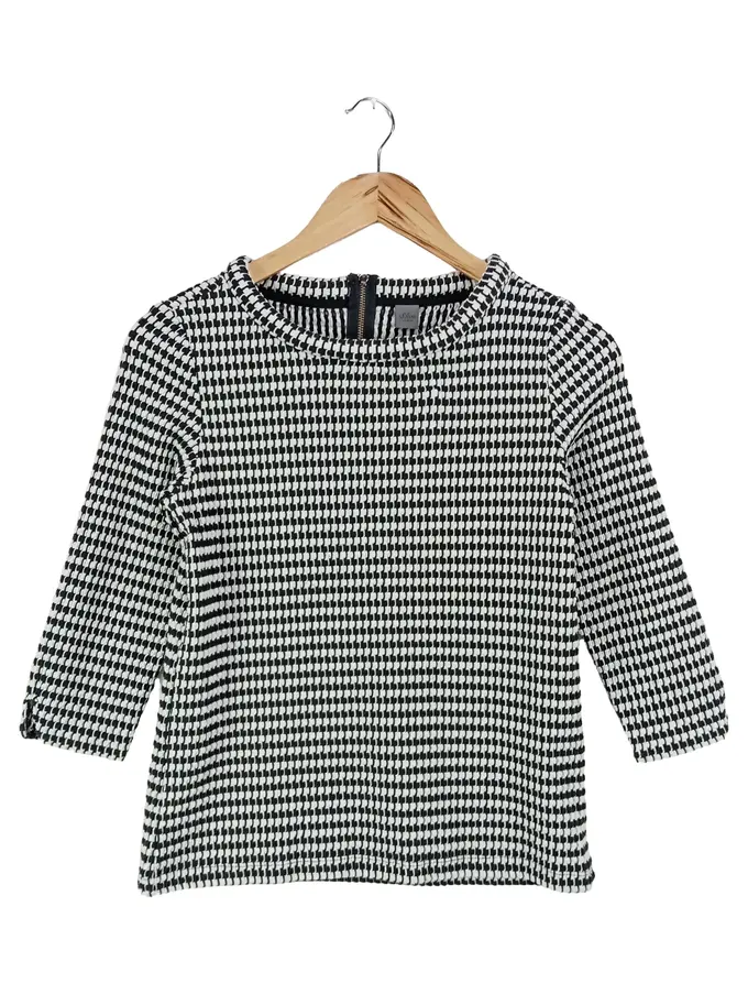 Damen Langarmshirt 34/XS Schwarz Weiß Geometrisch Klassisch Casual