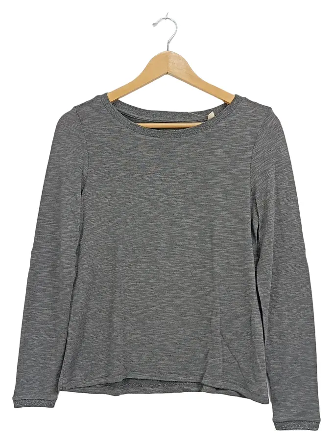Damen Langarmshirt Basic Grau Meliert Gr. XS Viskose