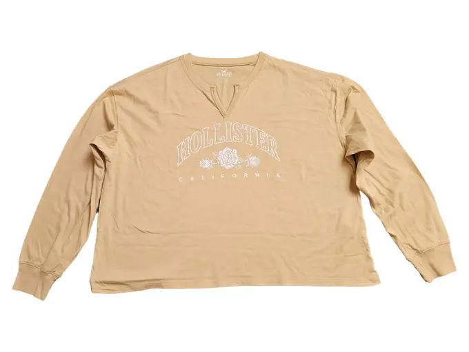 Damen Langarmshirt Beige Gr. 38/M Baumwolle Casual
