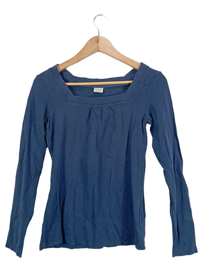 Damen Langarmshirt Blau Gr. S Carree-Ausschnitt Baumwolle