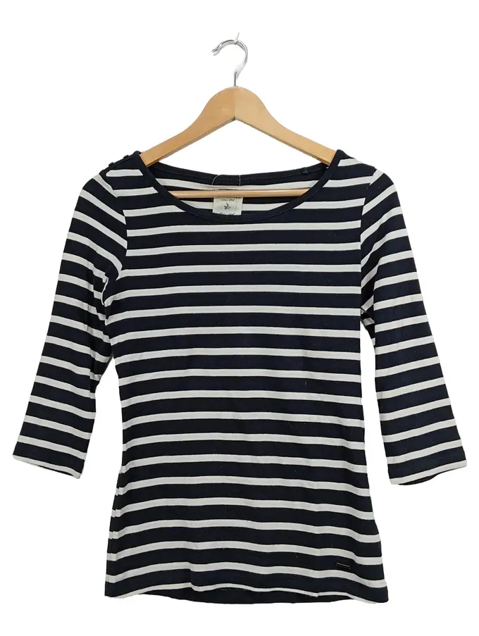 Damen Langarmshirt Gestreift Gr. 36;S Schwarz Baumwolle Casual Basic