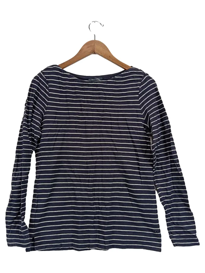 Damen Langarmshirt gestreift Gr. 38/M Blau Casual Baumwolle