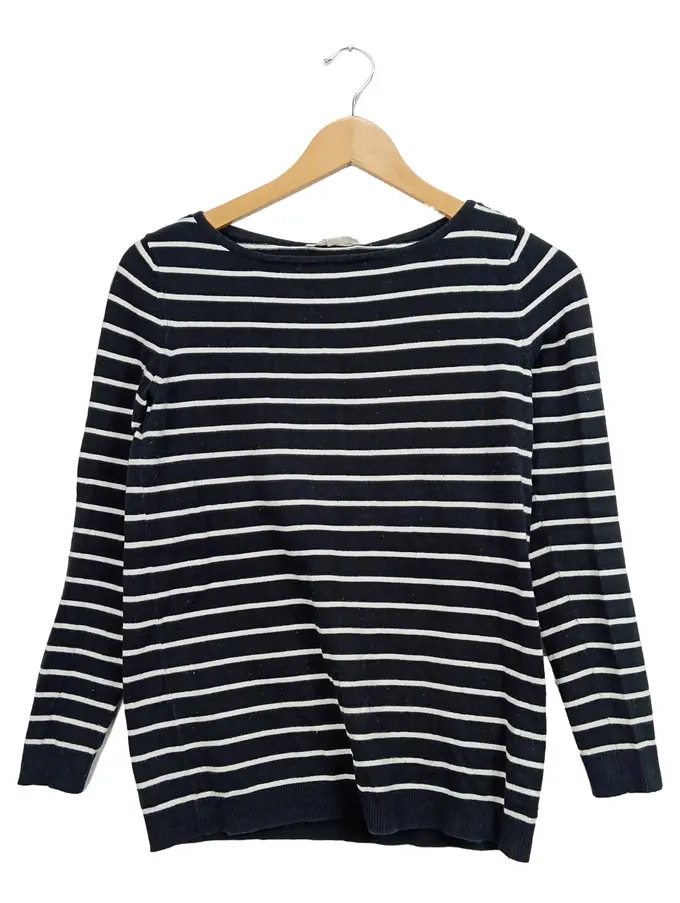 Damen Langarmshirt gestreift Schwarz Gr. 34;XS