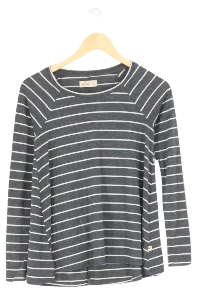 Damen Langarmshirt Gr. 34/XS Grau Gestreift Casual Preppy
