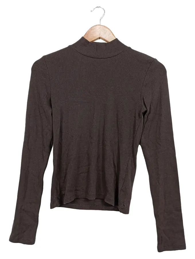 Damen Langarmshirt Gr. 36/S Basic Braun Rippstrick Rollkragen