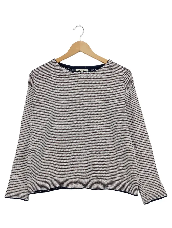 Damen Langarmshirt Gr. 36/S Beige Gestreift Casual