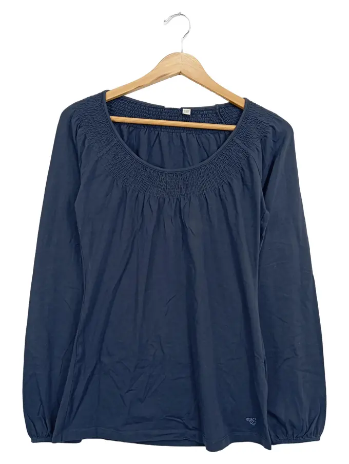Damen Langarmshirt Gr. 38/M Blau Casual Baumwolle