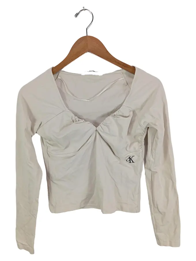 Damen Langarmshirt Gr. 40/L Beige Modisch Logo-Print