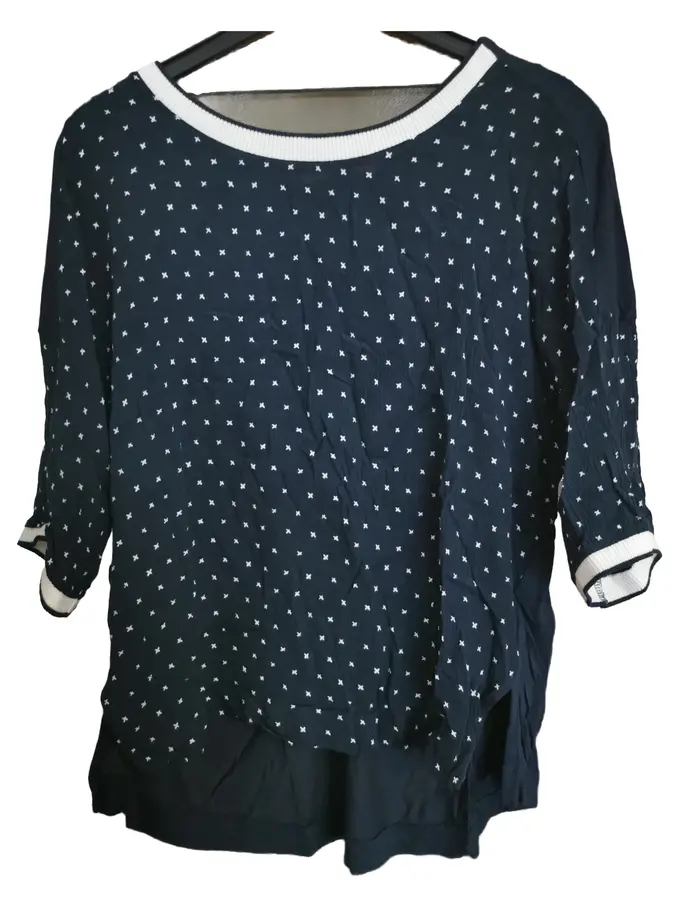 Damen Langarmshirt Gr. 40/L Blau Casual Punkte