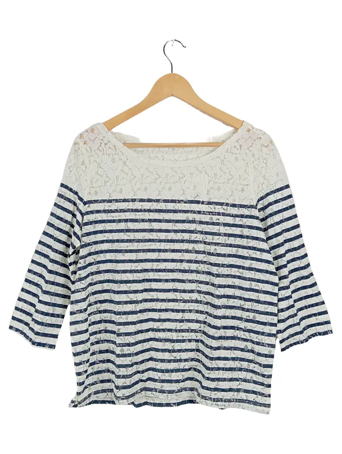 Damen Langarmshirt Gr. 40/L Maritim Gestreift Spitze Mehrfarbig