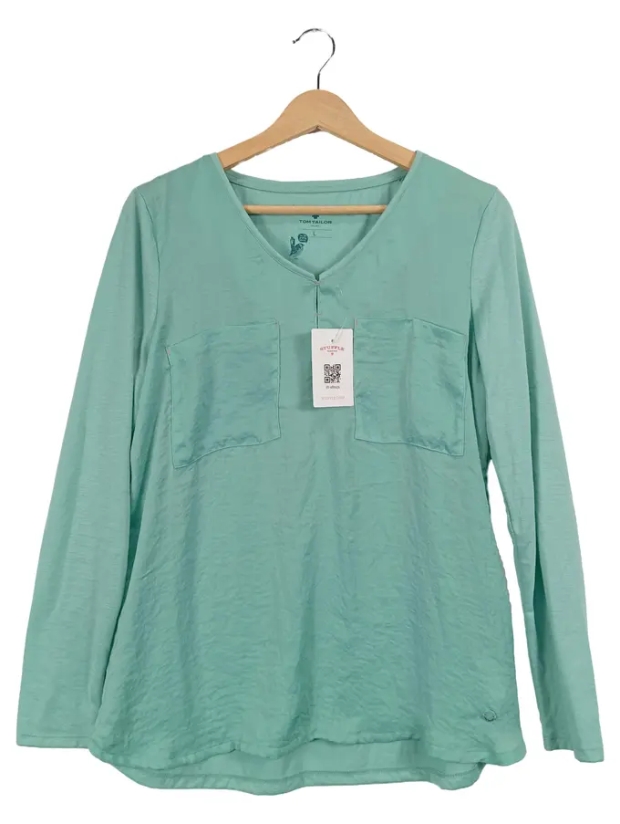 Damen Langarmshirt Gr. 40/L Türkis Casual Polyester Viskose
