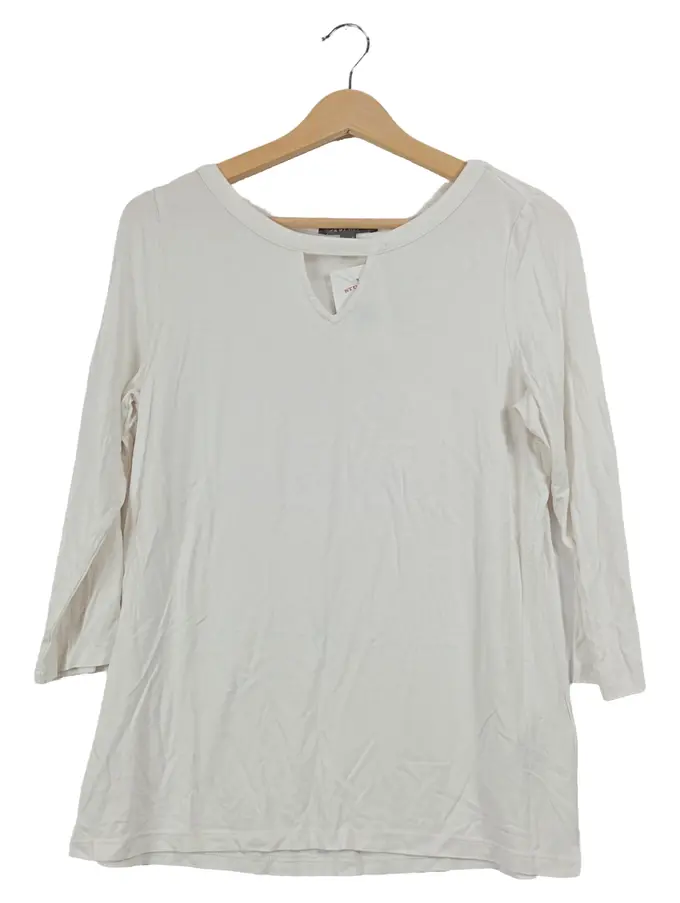 Damen Langarmshirt Gr. 40/L Weiß Basic Viskose Elasthan