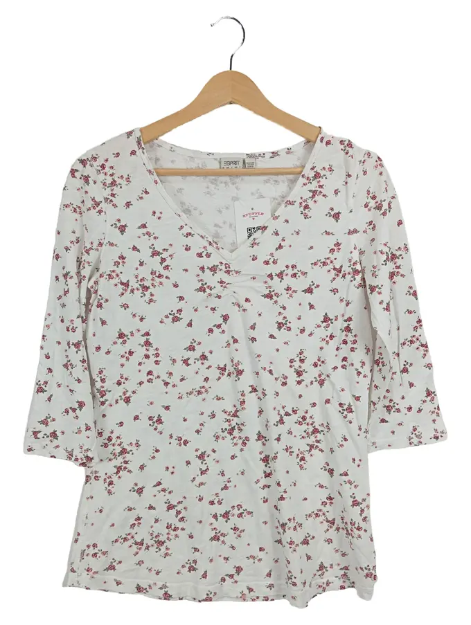 Damen Langarmshirt Gr. 40 L weiß mit Blumenmuster Casual
