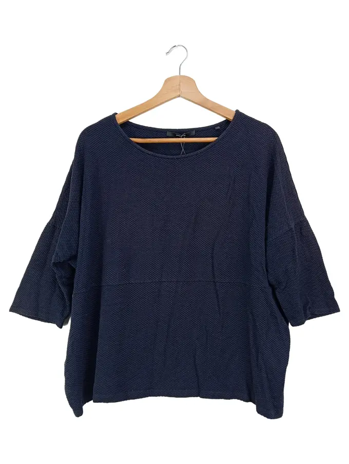 Damen Langarmshirt Gr. 40/M Blau Klassisch Casual Strukturmuster