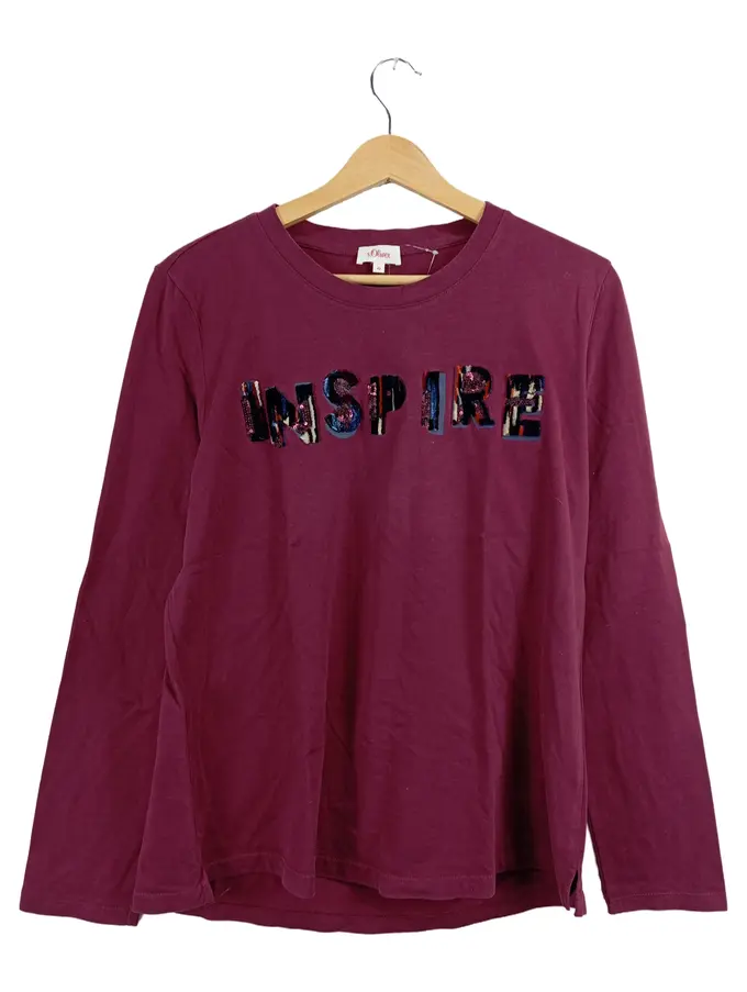 Damen Langarmshirt Gr. 42 Lila INSPIRE Pailletten Stickerei