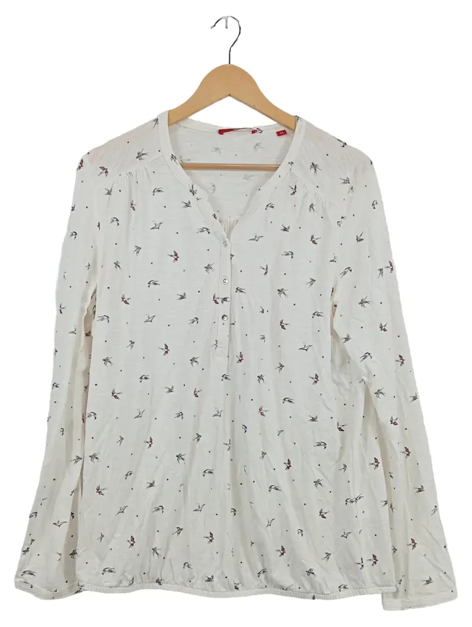 Damen Langarmshirt Gr. 42 Weiß Casual mit Vogel Motiv
