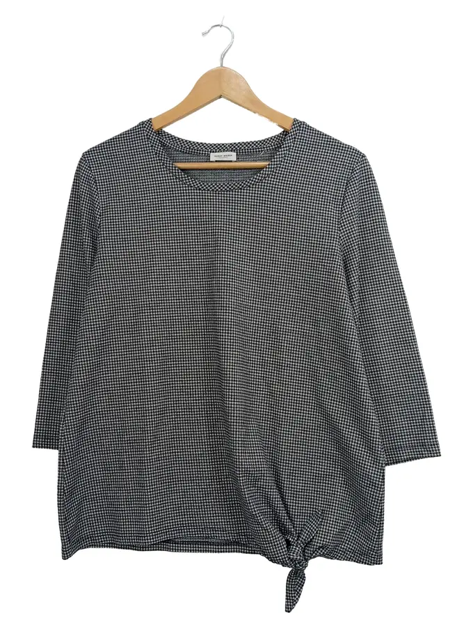 Damen Langarmshirt Gr. 42/XL Schwarz Weiß Kariert Knotendetail