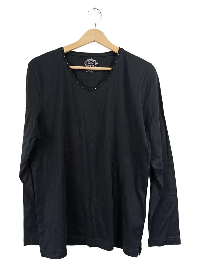 Damen Langarmshirt Gr. 46 Schwarz Pima Cotton Strasssteine