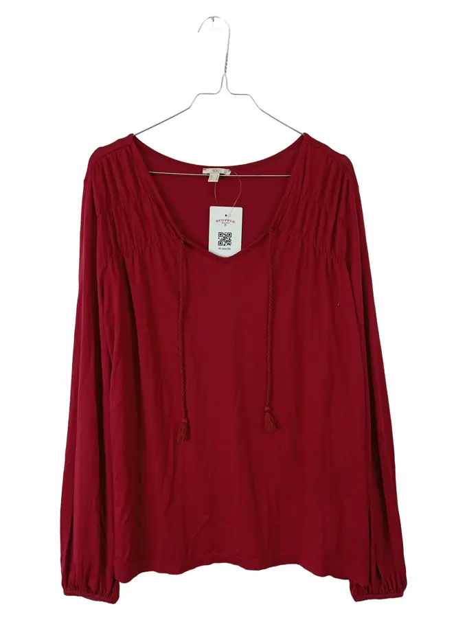 Damen Langarmshirt Gr. M Rot Boho Quasten Viskose