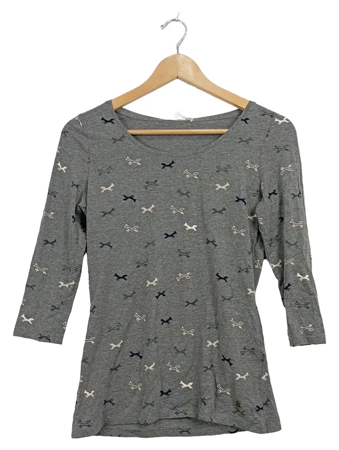 Damen Langarmshirt Gr. S grau Hundemuster 3/4-Arm Casual