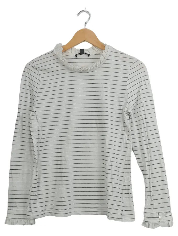 Damen Langarmshirt Gr. S Weiß Gestreift Rüschenkragen Baumwolle