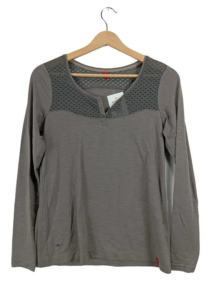 Damen Langarmshirt Gr. XS Grau Lochmuster Casual