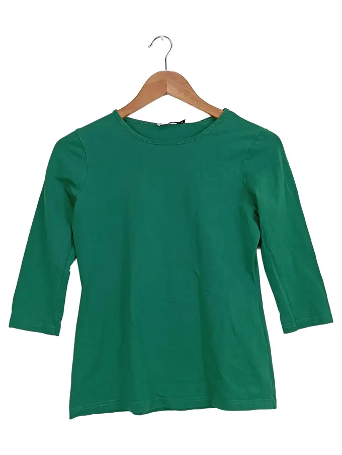 Damen Langarmshirt Grün Gr. M 3/4-Arm Basic Baumwolle