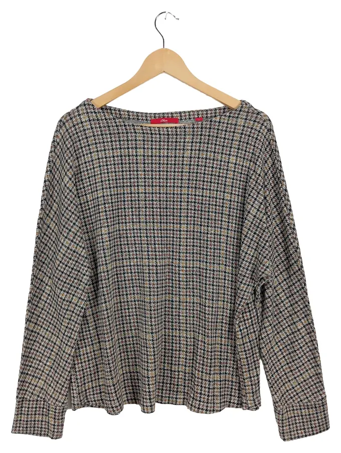 Damen Langarmshirt Kariert Hahnentritt Gr. 44/XXL Braun Beige
