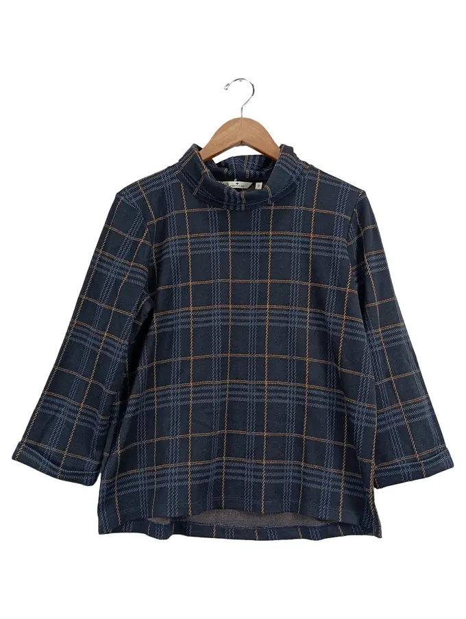 Damen Langarmshirt Karomuster Rollkragen Blau Gr. S
