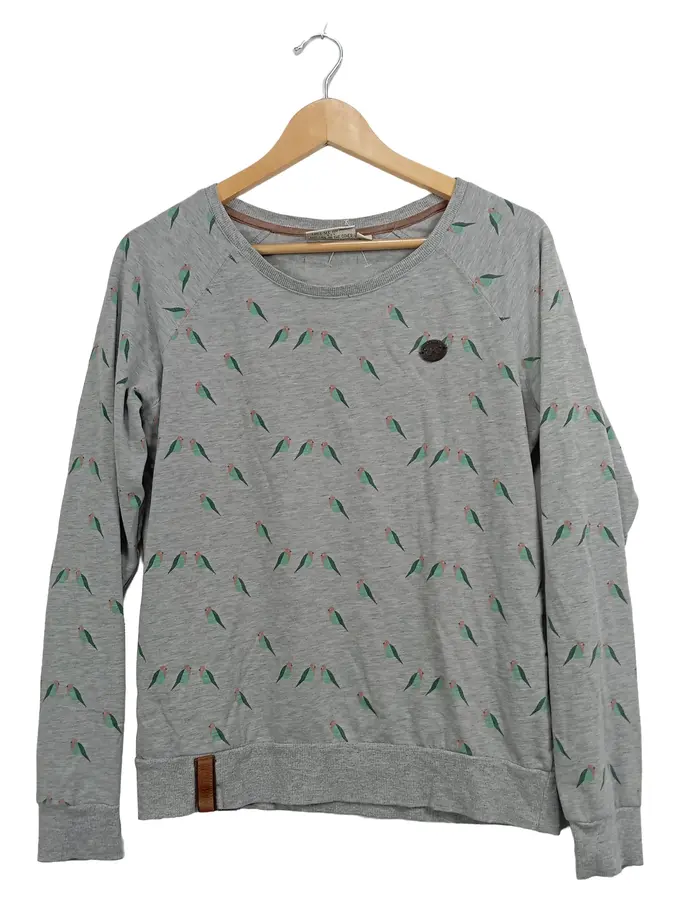 Damen Langarmshirt L/40 Grau Baumwolle Vogel Rippstrick Freizeit