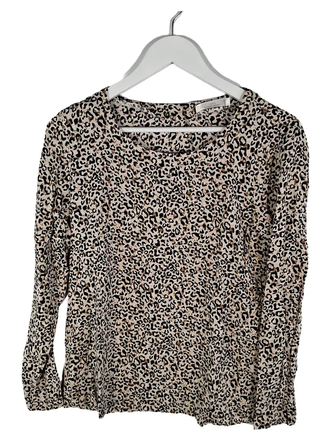 Damen Langarmshirt Leopardenmuster Beige Gr. 38 Viskose