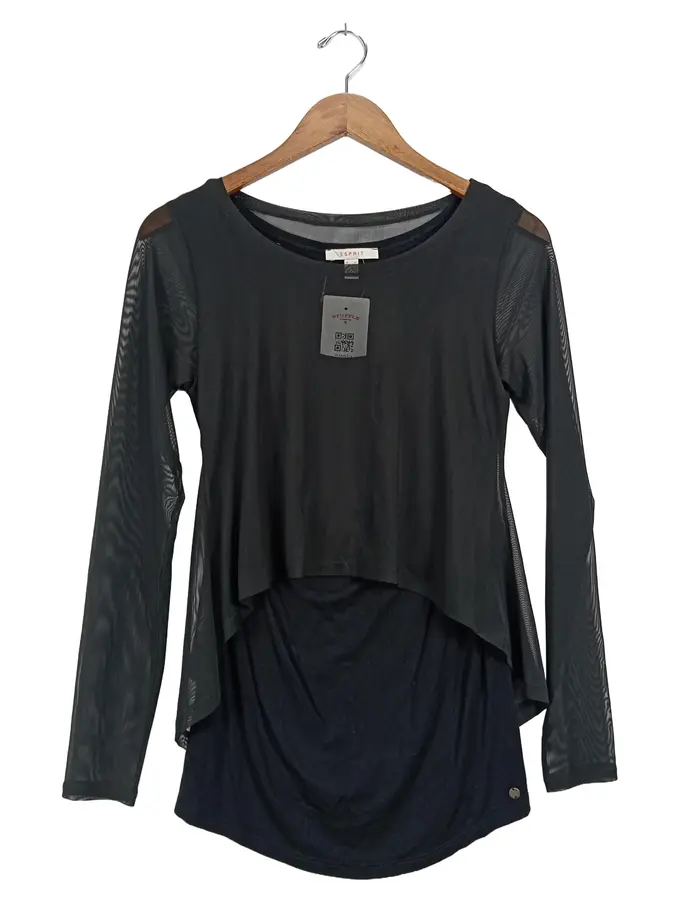 Damen Langarmshirt mit Mesh-Ärmeln Gr. 34/XS Schwarz Modern