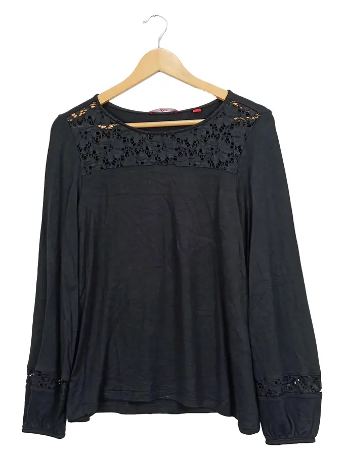 Damen Langarmshirt mit Spitze Gr. 36;S Schwarz Feminin